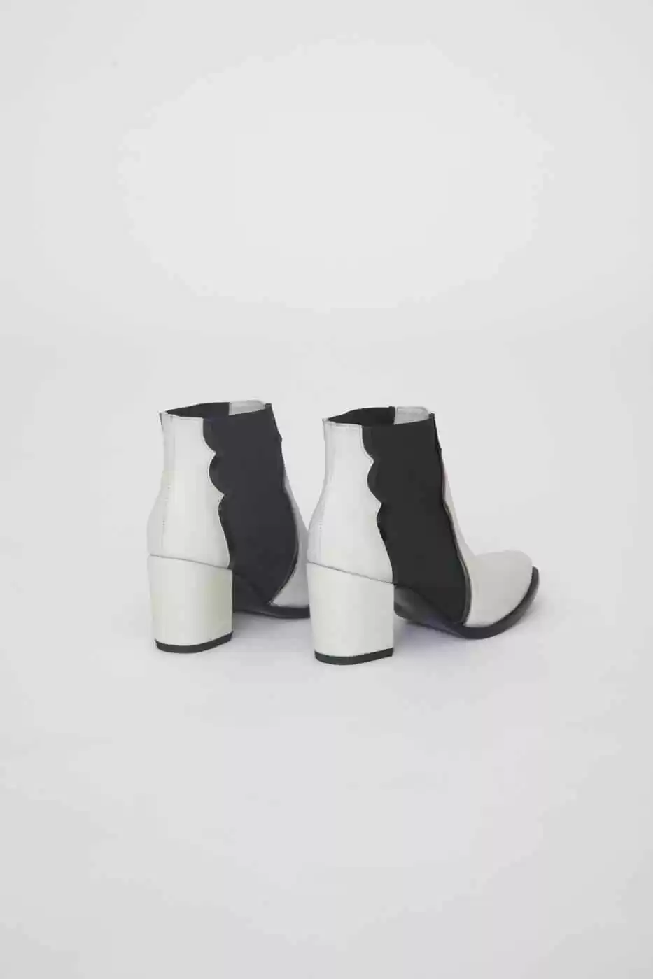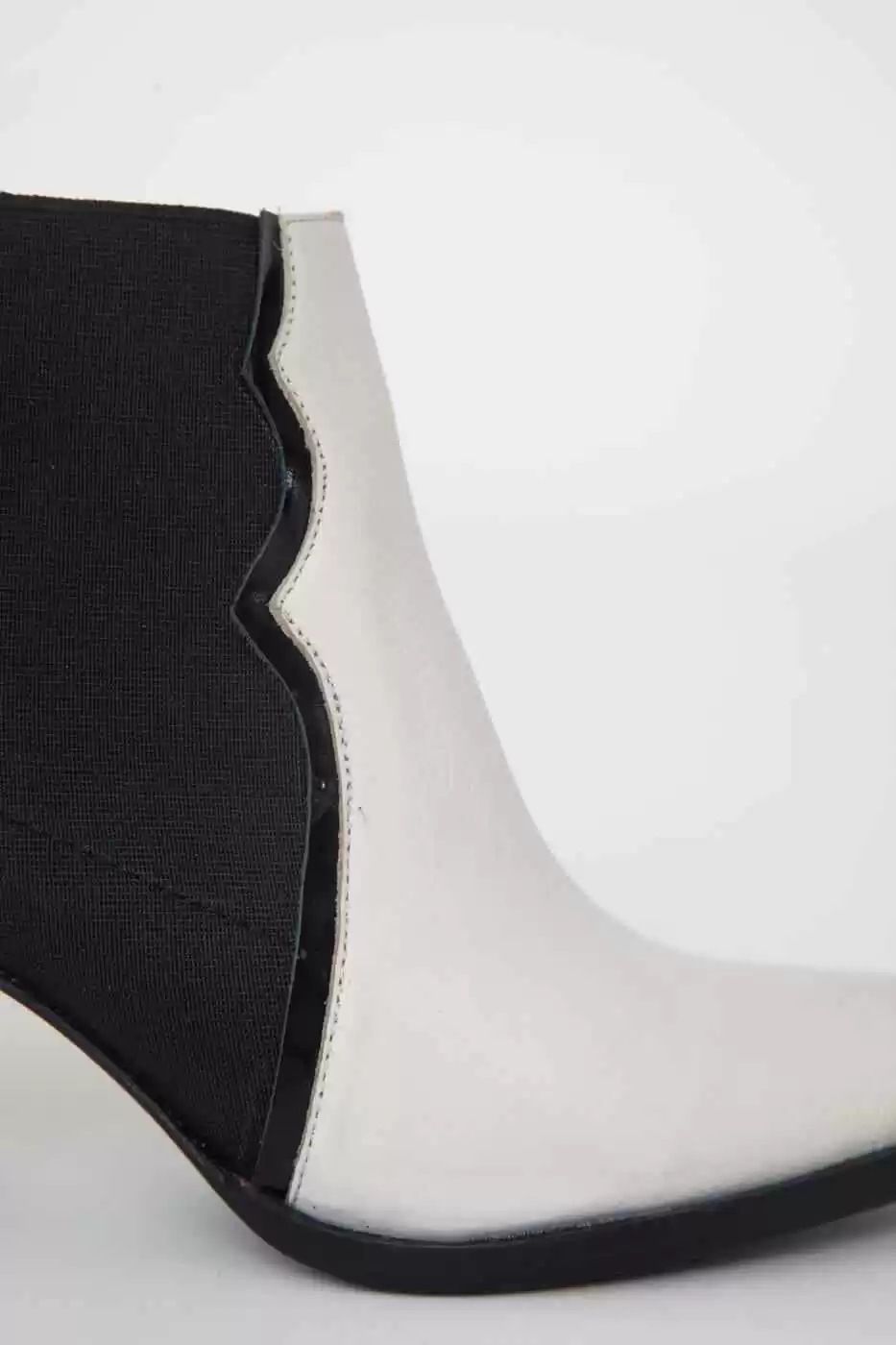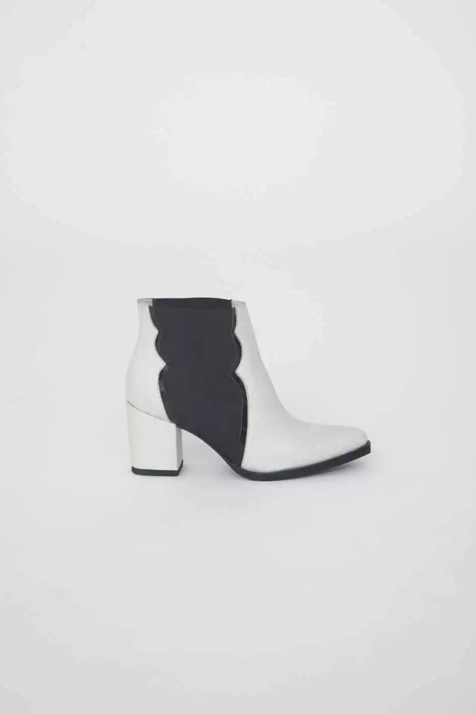 Botineta con elástico lateral. ribetes en charol a contratono. Taco palo forrado al tono.