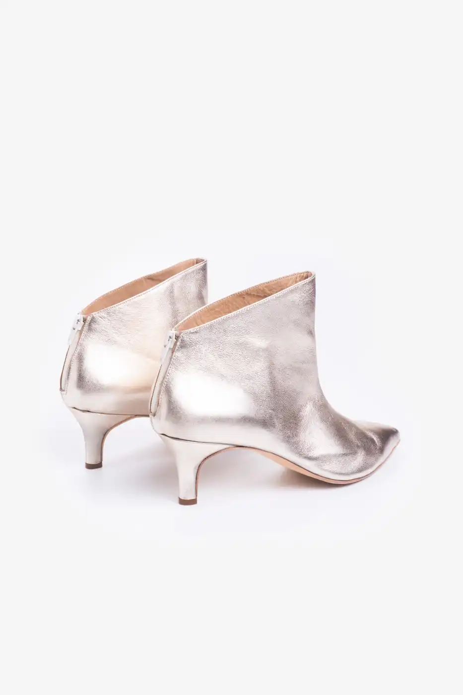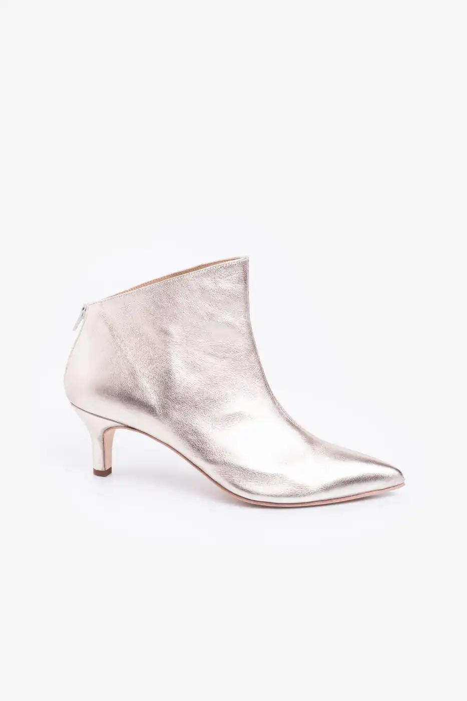 Botineta metalizada al tobillo con cierre en el talón.