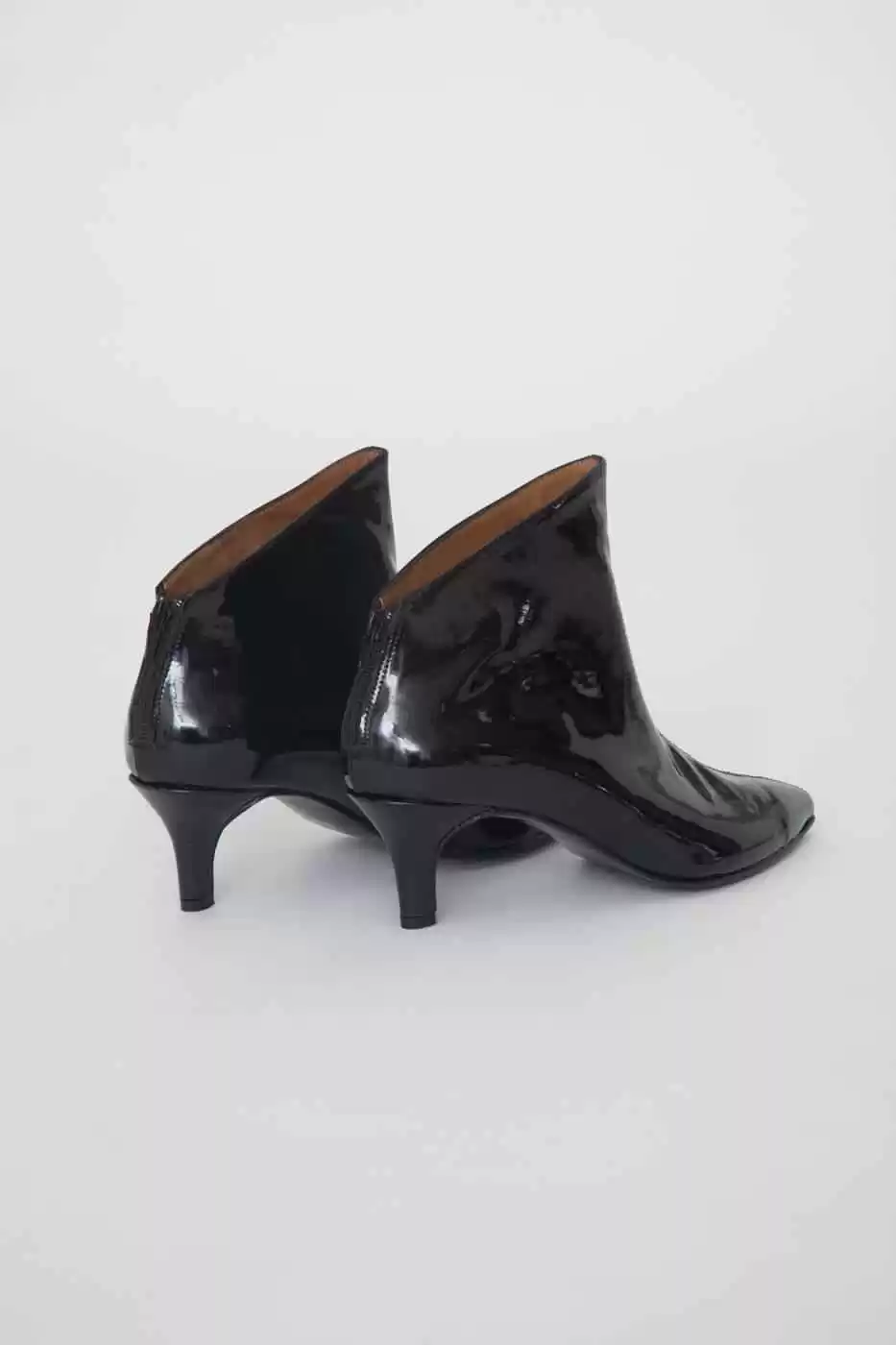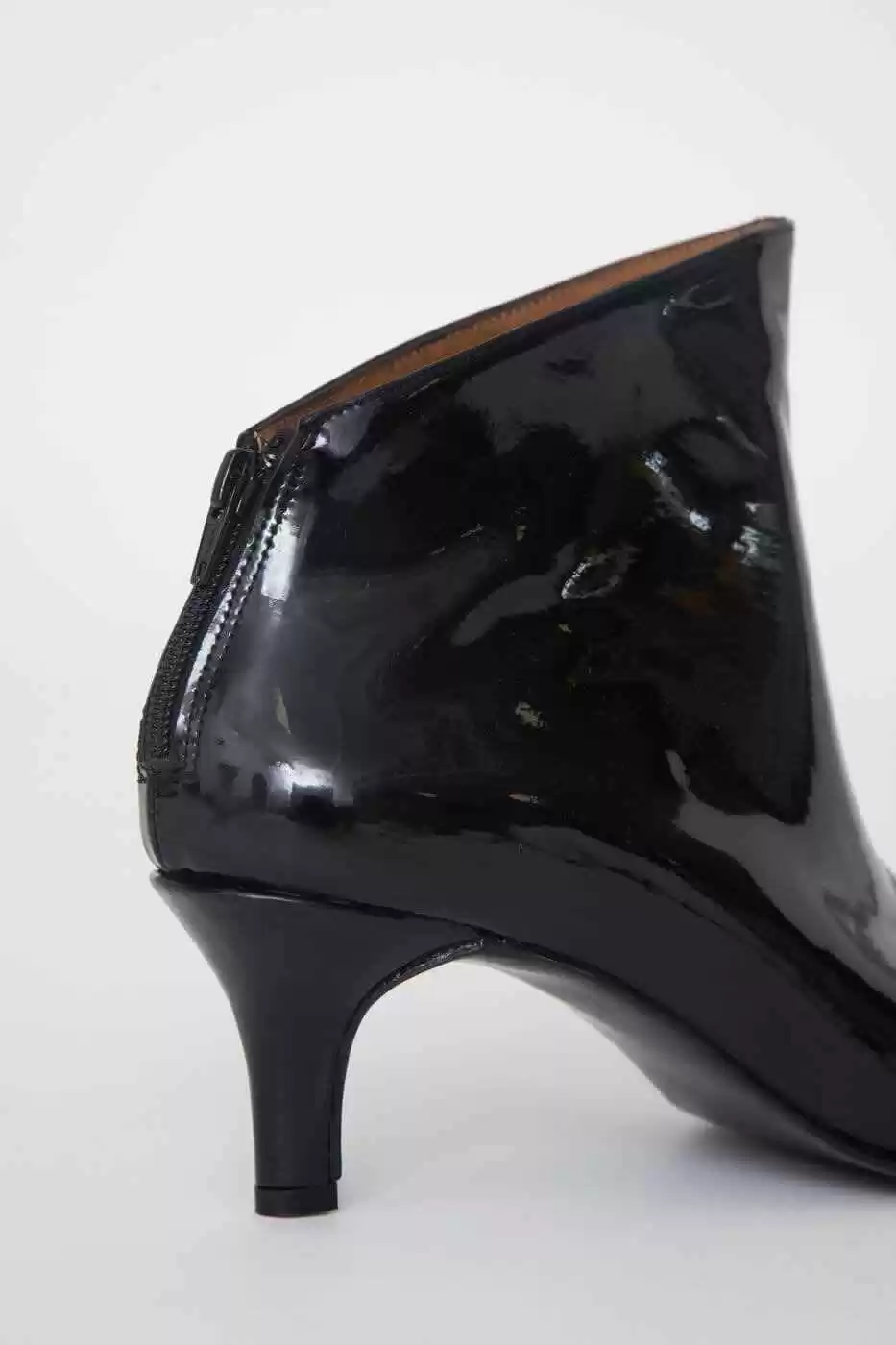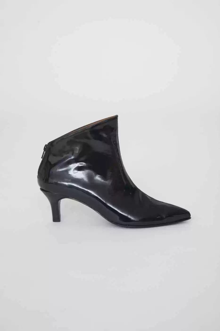 Descripción: Botineta charol negro al tobillo con cierre en el talón.