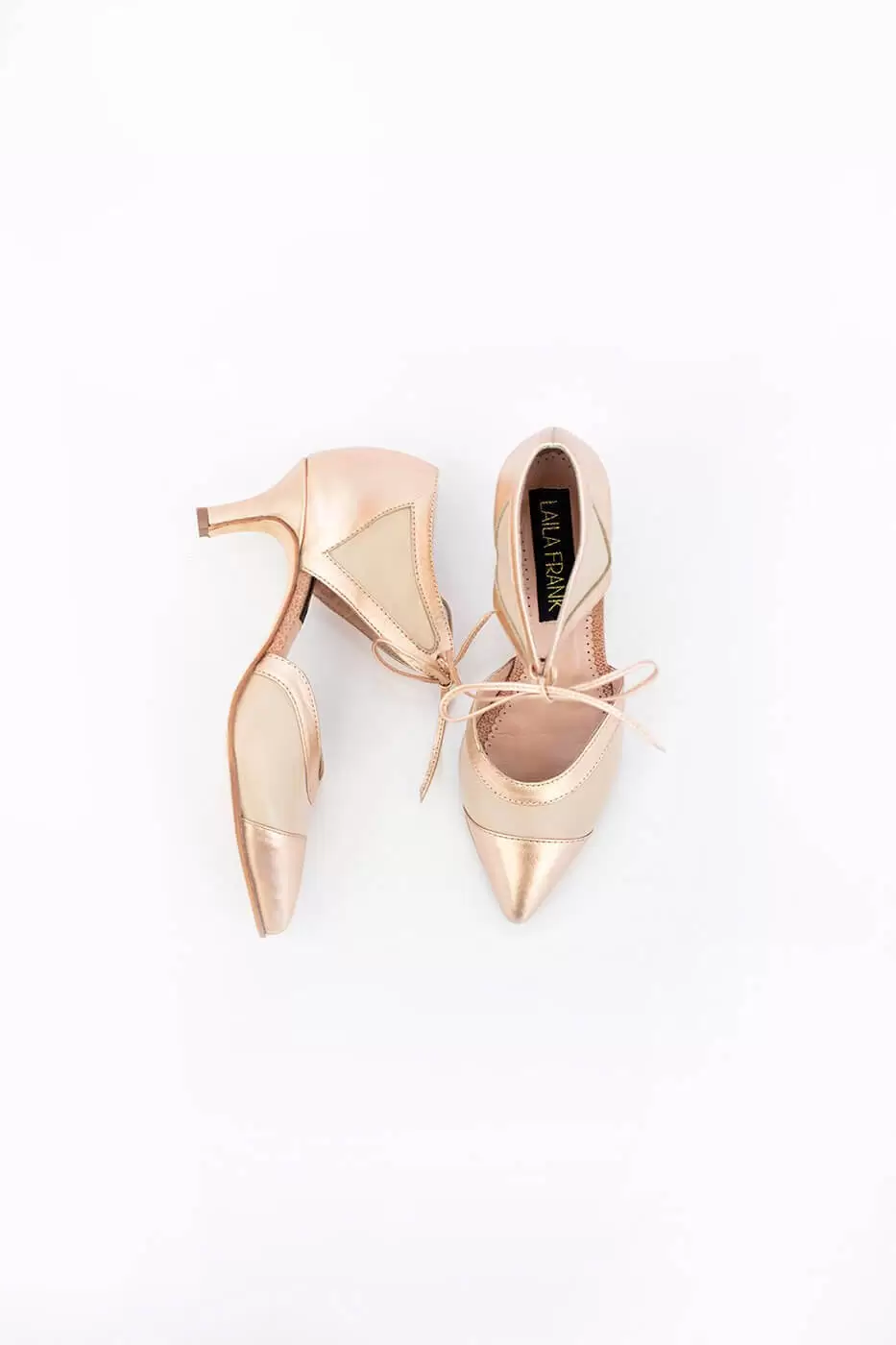 Stiletto de Cabretilla con detalles en cobre rosado con agarre de cordón al tono
