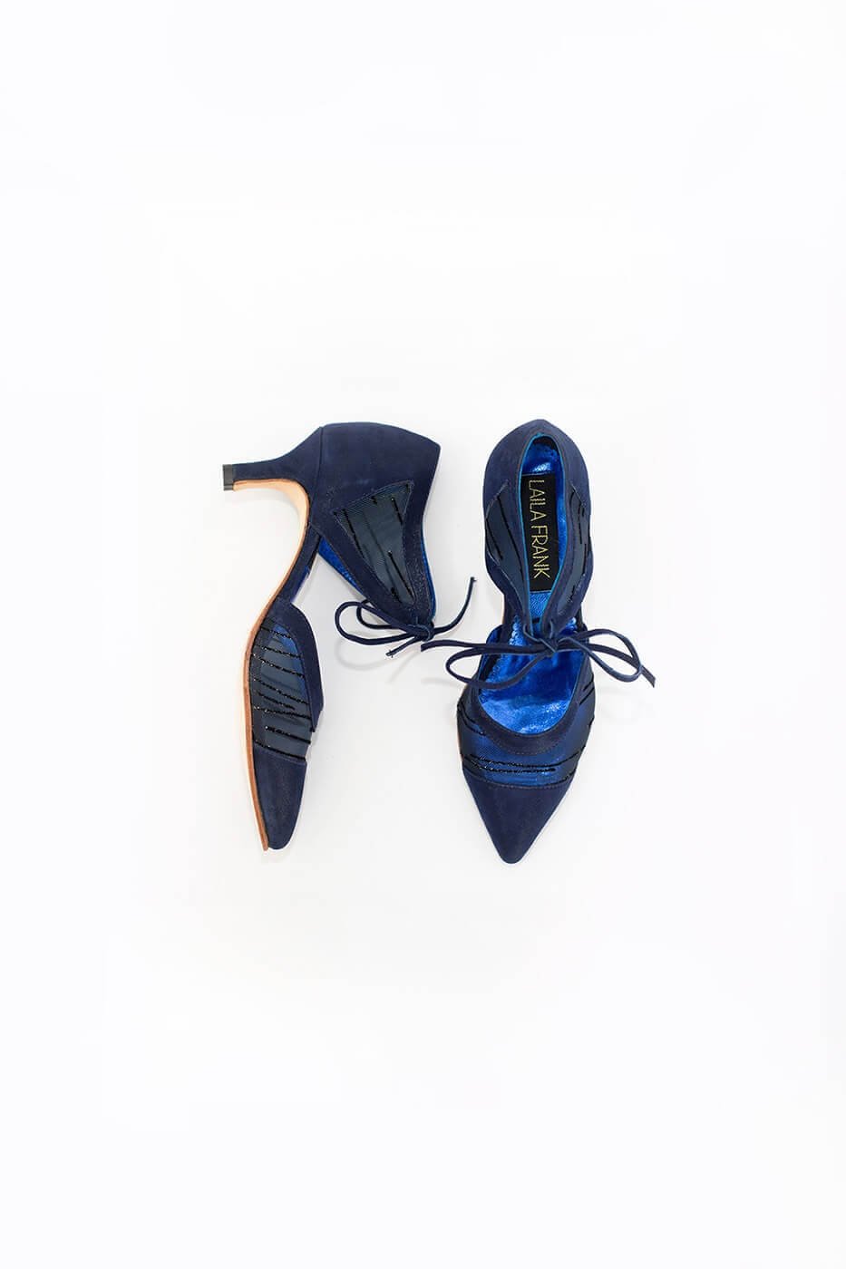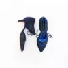 Stiletto de Cabretilla en micropunto azul en combinación con billone con agarre de cordón al tono