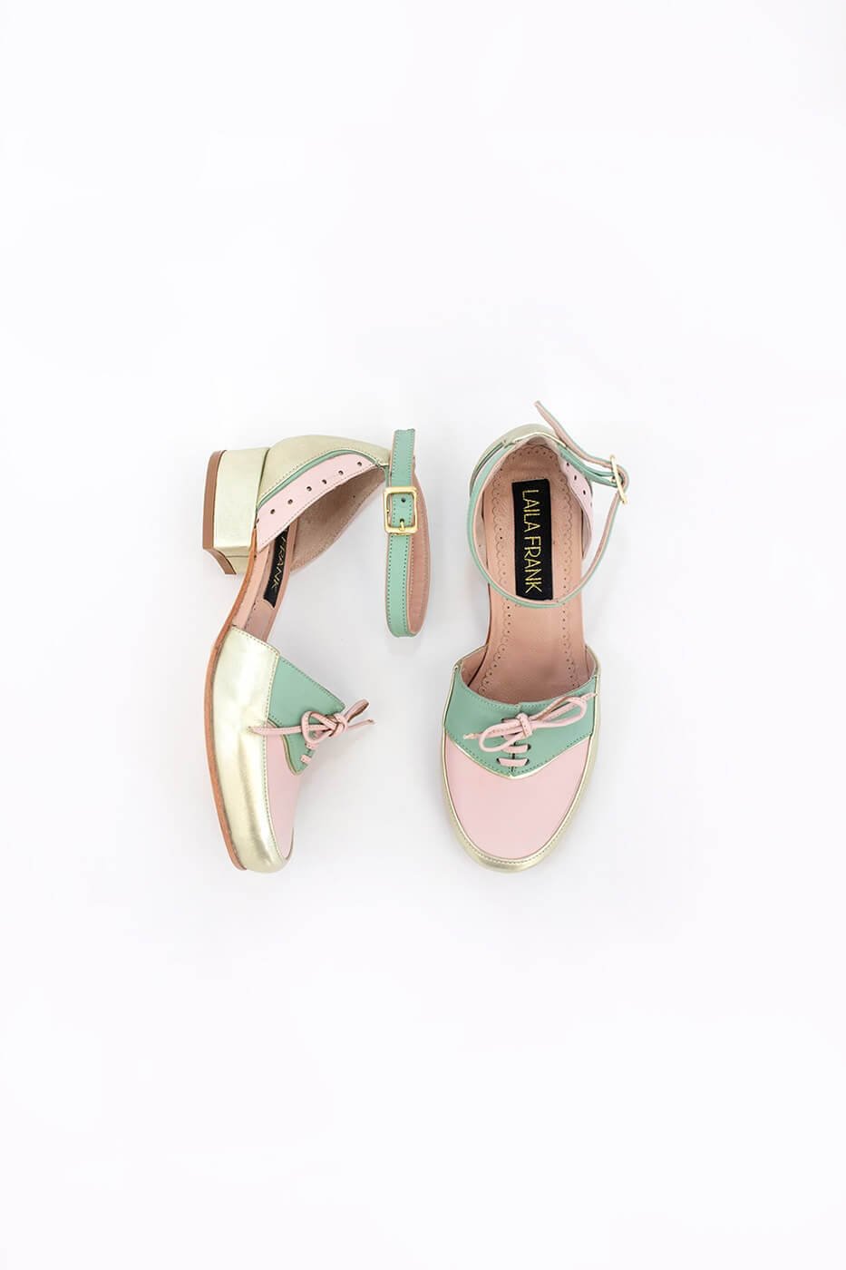 Capellada: Mix de cabretilla color platino, rosado y verde, cordón de agarre al tono