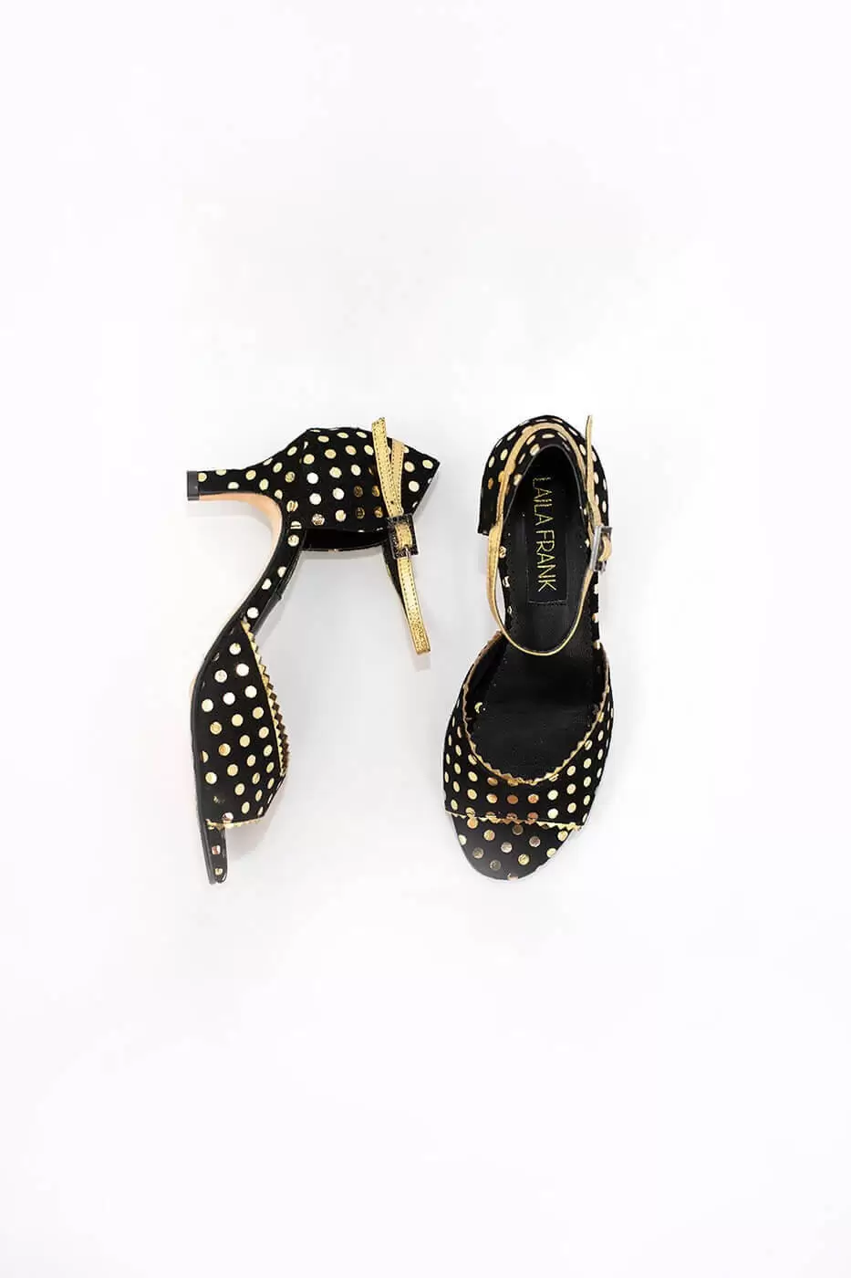 Sandalia de Cabretilla con transfer a lunares y detalles en talón